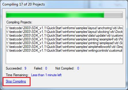 - VB and C# compile screen now has a “Stop Compiling” button: