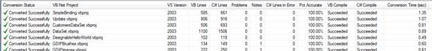 - The multiple projects conversion screen now has columns for VB and C# compile status and conversion time: